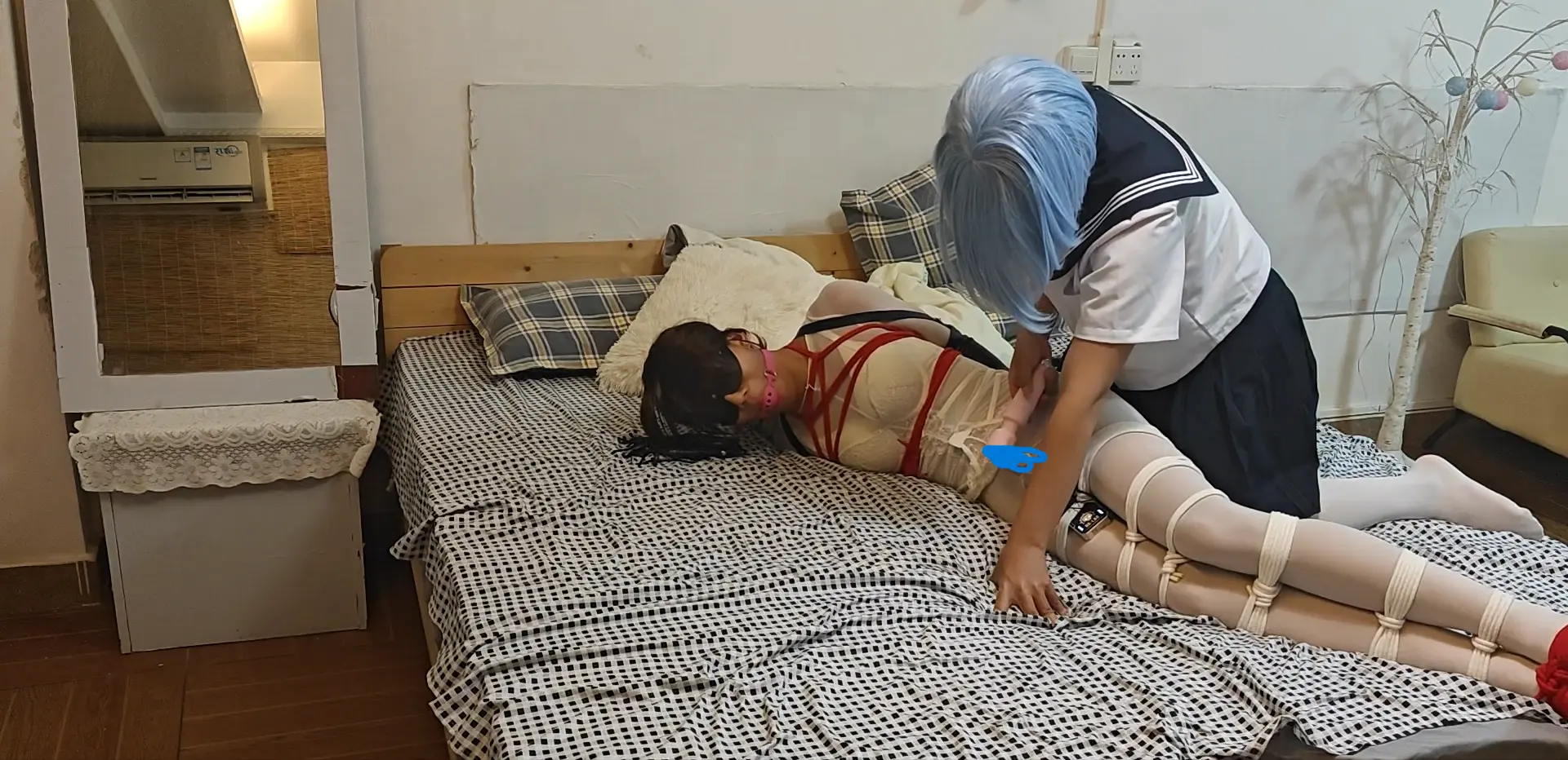 【第二次补链】回归后开启新系列【极致系列-头套女】大学生、校服、失禁、羞耻、绝闷、双层头套、极致放置、极致挣扎、对胸、屁股、脚进行暴击