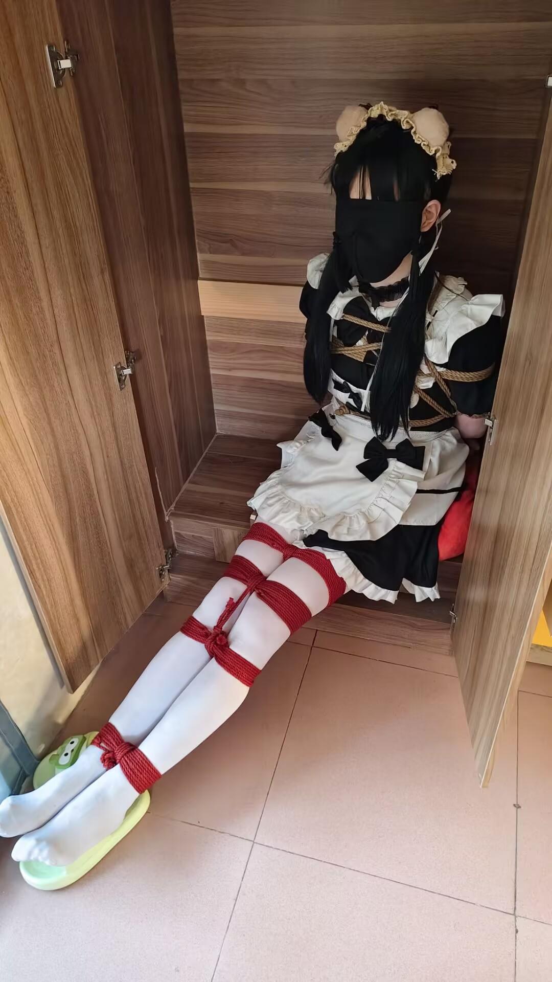 【蕉蕉鱼】第一次玩,第一次出片,伪娘久久的柜子放置完全捆绑